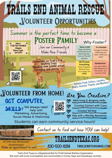 Our mission is to collaborate with local municipalities and community groups, find homes for abandoned and neglected pets and aleviate overcrownding in our shelters. We are a foster based rescue located on 10 acres in beautiful New Braunfels, visits by appointment only.
